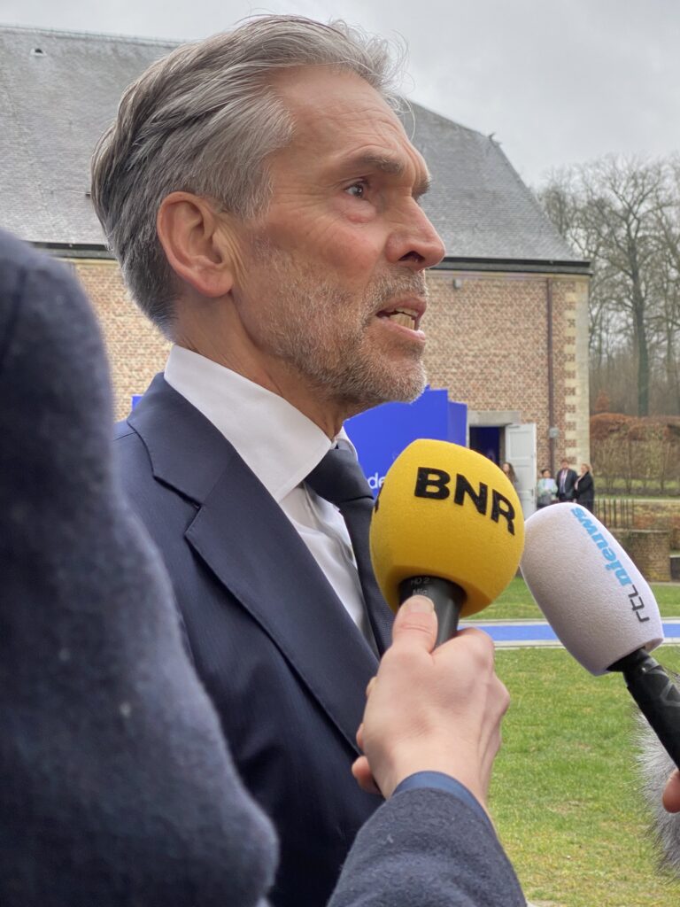 We zijn vertrokken. In de persbus klinkt Frans, Duits, Italiaans, Spaans en nog meer talen van het continent; de voltallige internationale pers is aanwezig. We hebben geluk, het asfalt van de E314 richting Alden Biesen ligt er mooi bij er staat geen file. Gelukkig maar, want om 10:15 staat premier Dick Schoof de pers te woord over wat deze dag zal brengen.