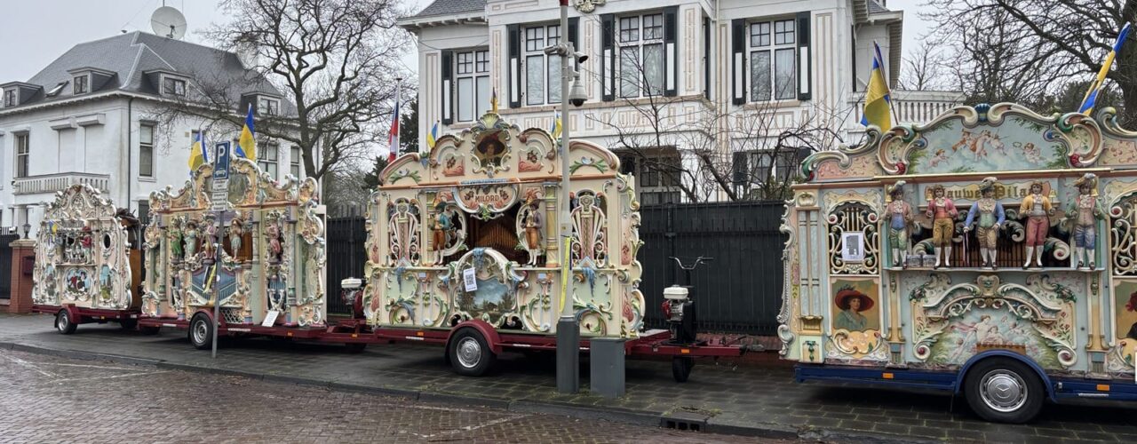 Het is vandaag op de dag af vier jaar geleden dat Russische troepen Oekraïne binnen vielen. Het Europees Parlement vergadert er deze ochtend over en de voorzitter van de Europese Commissie, Ursula von der Leyen, brengt een bezoek aan Kyiv. De nieuwe premier Jetten belt vandaag in bij een videovergadering van de Coalitie van Bereidwilligen, om Oekraïne te blijven steunen. Gisteren belde Jetten al met zijn Oekraïense ambtsgenoot Zelensky. In Den Haag wordt er zoals elke dag gedemonstreerd tegen de oorlog voor de Russische ambassade. Naast de Oekrainse vlag die daar elke dag wordt opgehangen wordt een lawaaiprotest verwacht met potten en pannen en ook vier draaiorgels (foto). Deze orgels zijn een kunstenaarsproject en zullen asynchroon het Oekraïense volkslied spelen.